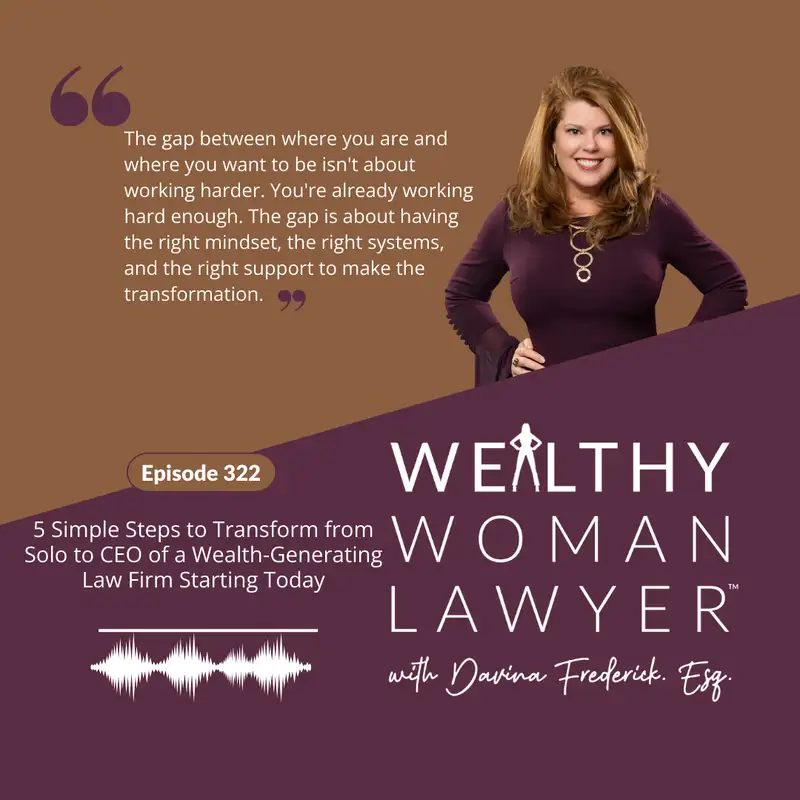 In this episode of the Wealthy Woman Lawyer® Podcast, Davina Frederick addresses a challenge that plagues countless women law firm owners: the feeling of being perpetu...