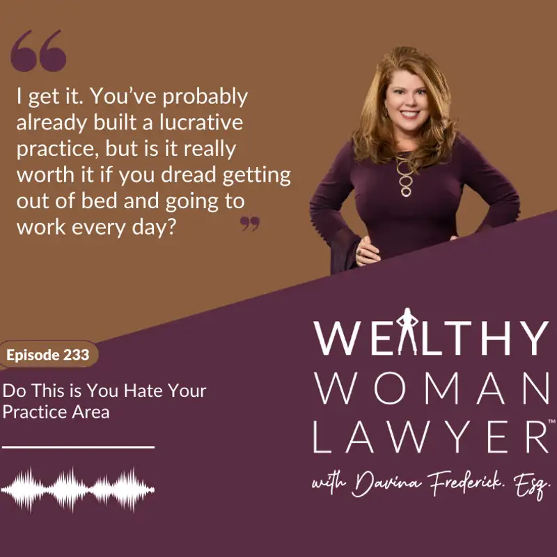 In this week’s episode, I delve into what to do if you absolutely despise your practice area and it’s causing you to fantasize about walking out the door, moving to an...
